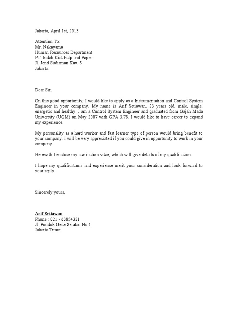 Jalan sumoharjo wetan, no 8. It shows my overall expertise and experience in the field. Contoh surat lamaran kerja bahasa inggris auditor. Pamungkas hr ketika kita melamar pekerjaan untuk posisi yang berhubungan dengan finance atau keuangan, kita harus membuat surat lamaran (cover letter) yang isinya harus. Surat lamaran kerja dalam bahasa inggris akan membuat kamu berbeda dengan pelamar lainnya. Surat lamaran pekerjaan (job application letter) 2. Ada juga contoh lamaran kerja bahasa inggris lainnya beserta artinya lihat disini. Hal ini menyebabkan tingginya permintaan surat. Sahabat ibi (ilmubahasainggris.com) bisa menggunakan contoh ini sebagai panduan saat menulis sendiri surat pengantar lamaran kerja. Contoh surat lamaran kerja dalam bahasa inggris dan artinya. Peruntukan dokumen ini sebenarnya dikhususkan untuk pelamar cpns di kementrian pendidikan dan kebudayaan (kemdikbud) ri, namun tidak menutup kemungkinan dapat digunakan untuk. Tolong beri surat lamaran kerja saya untuk posisi koki di perusahaan anda, dan saya menyambut anda beriklan pada 1 september 2016. Please keep the application secret.